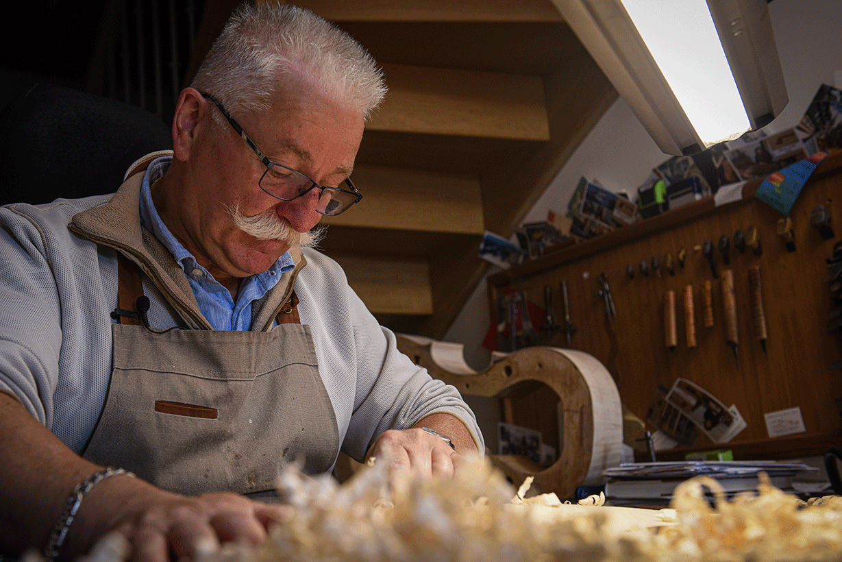 Près de cinquante ans penché sur ces violoncelles, et Jean-Pierre ne s’est toujours pas arrêté. À l’âge de la retraite, il continue à créer ses instruments, certes, à un rythme plus raisonnable, mais avec le luxe du temps. Et c’est ce temps qu’il met maintenant au service des autres : son fils, également luthier, à qui il “donne un coup de main” dit-il modestement, mais également à quelques luthiers amateurs.