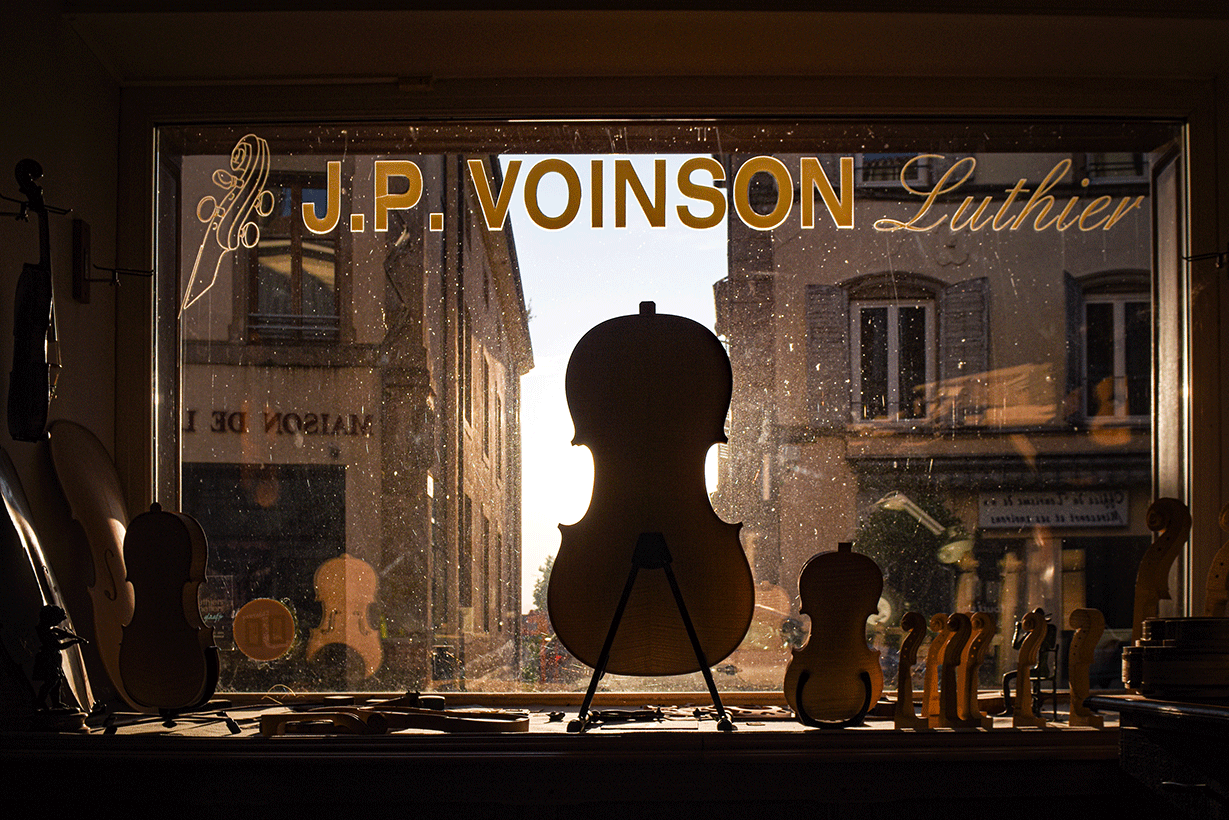 C’est le cas de Jean-Pierre Voinson, un brin matinal, qui ouvre sa boutique bien avant les 9 heures réglementaires, et ce pour la cinquantième année consécutive. À 67 ans, c’est un des noms reconnus de la lutherie française. Une solide stature, l’œil rieur, un grand sourire souligné de bacchantes aussi bien taillées que la courbe des violoncelles qui ont fait sa réputation, Jean Pierre déploie tranquillement son tablier, dans un cérémonial répété toute une vie, comme une introduction à une longue journée de labeur et de concentration.
