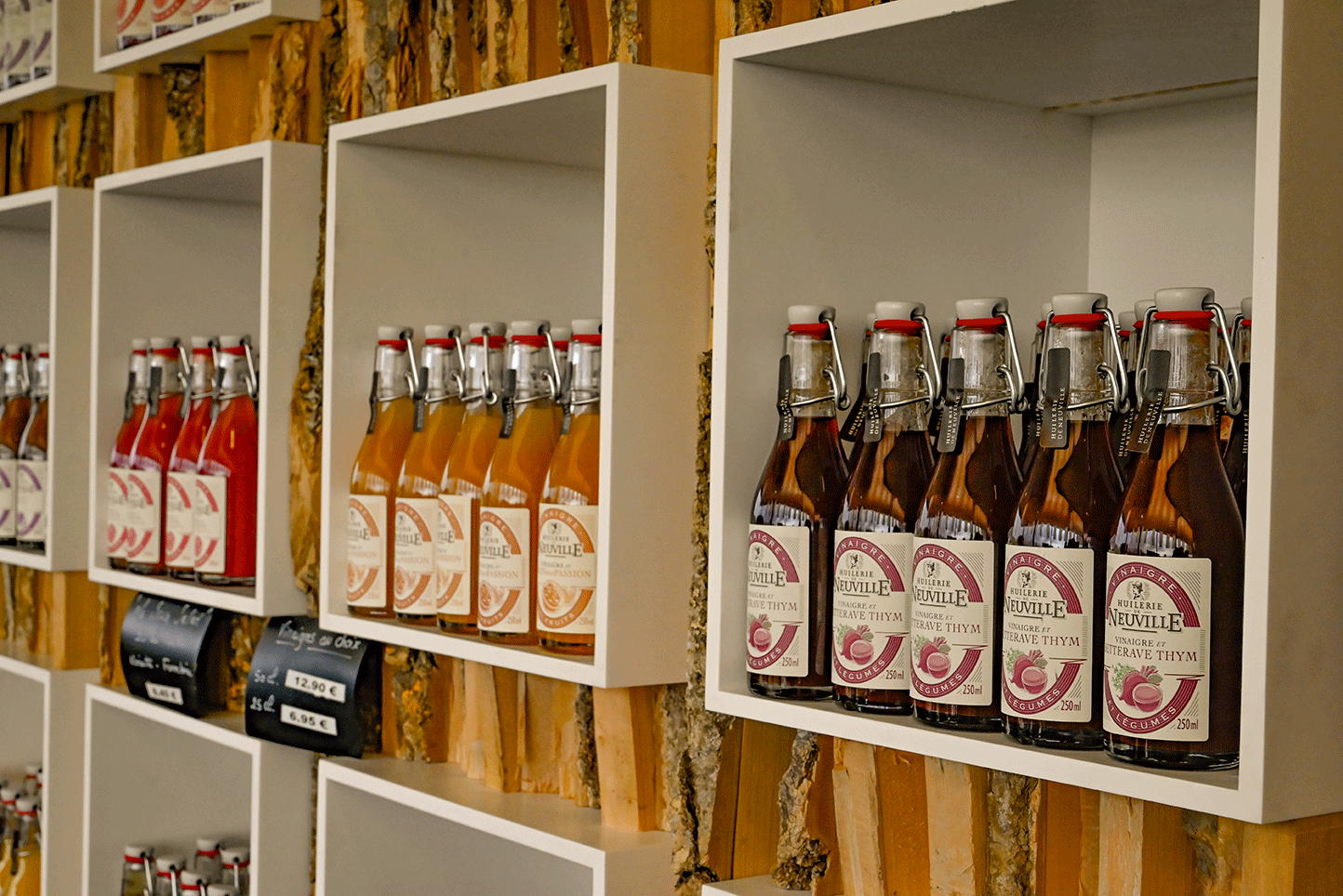 Surprise : ce n’est pas devant une vieille bâtisse estampillée 1850, date de création de l’entreprise, que nous nous sommes garés à notre arrivée, mais devant un bâtiment de 1 200 m2 quasiment neuf – il n’a qu’une dizaine d’années. À l’intérieur, dans une petite salle de production, des machines récentes côtoient de plus anciennes, tandis que de l’autre côté, s’étend une boutique que l’on aura du mal à quitter, avec toutes ces bouteilles qui sont autant de promesses de délicieux moments…